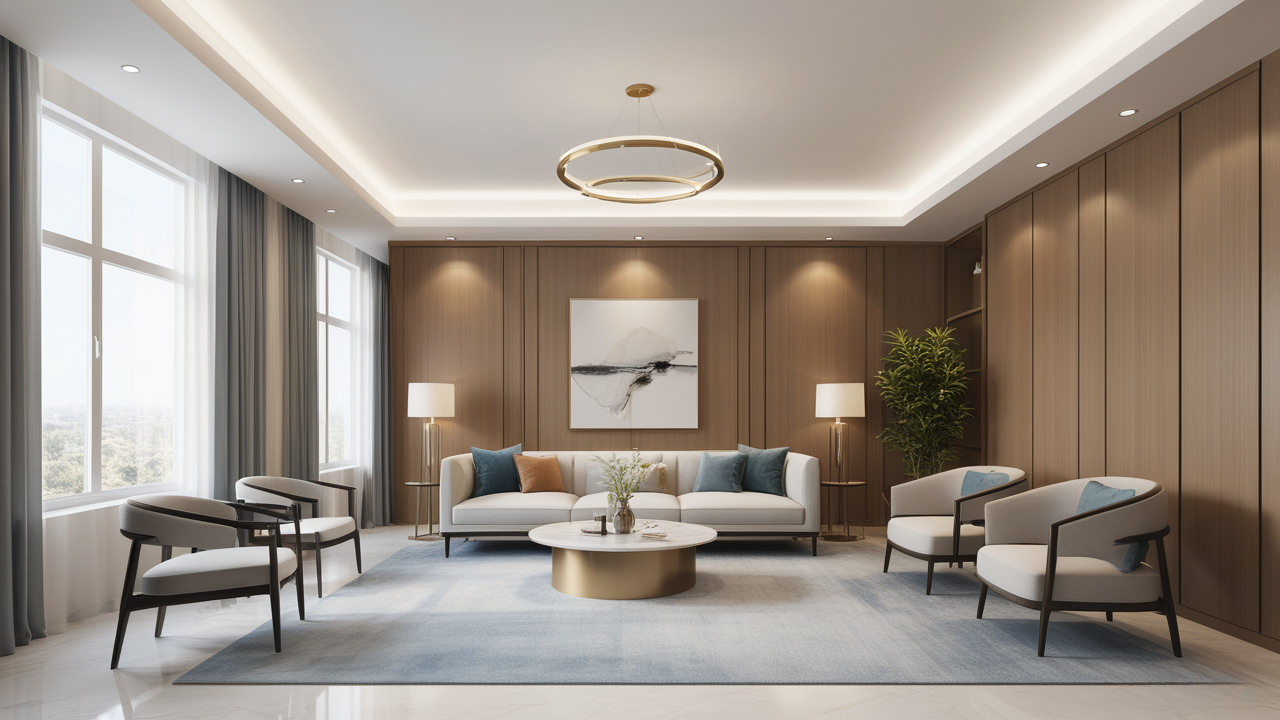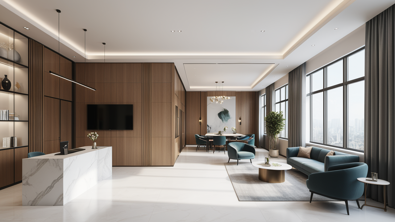 本案設計主題 “靈透之材,蓬勃之勢”為主題,本案就其“鋼之靈透”,用象征化的表現手法,多元化的設計元素,力求整體風格與整棟大樓協調、清新、大氣的外觀設計保持一致,企業氣質內外渾然一體,展現出富有深刻內涵的視覺空間及該企業獨特的個性與特點,將復蘇這一時代特性滲透于整個空間,既突顯造企業特質,又蘊涵公司新興而極具沖擊力的蓬勃發展之勢!