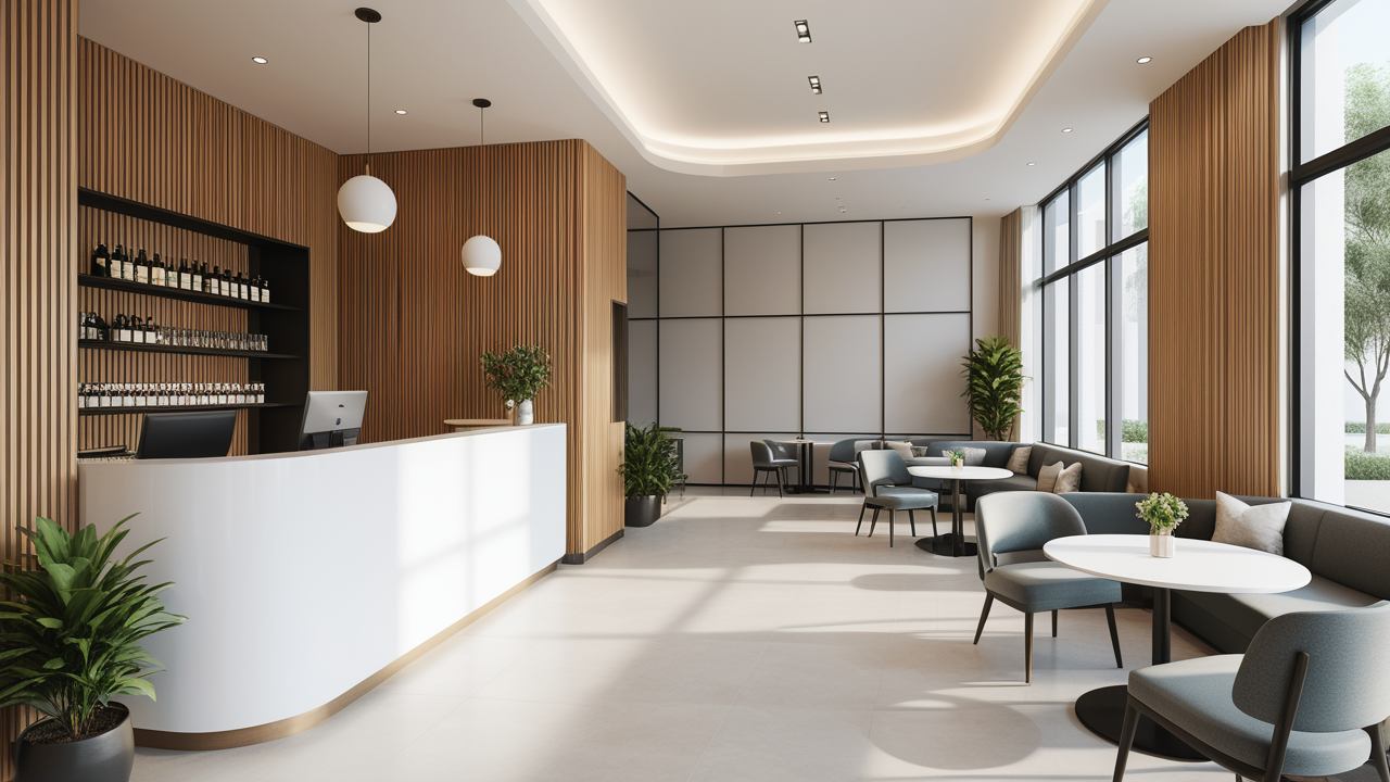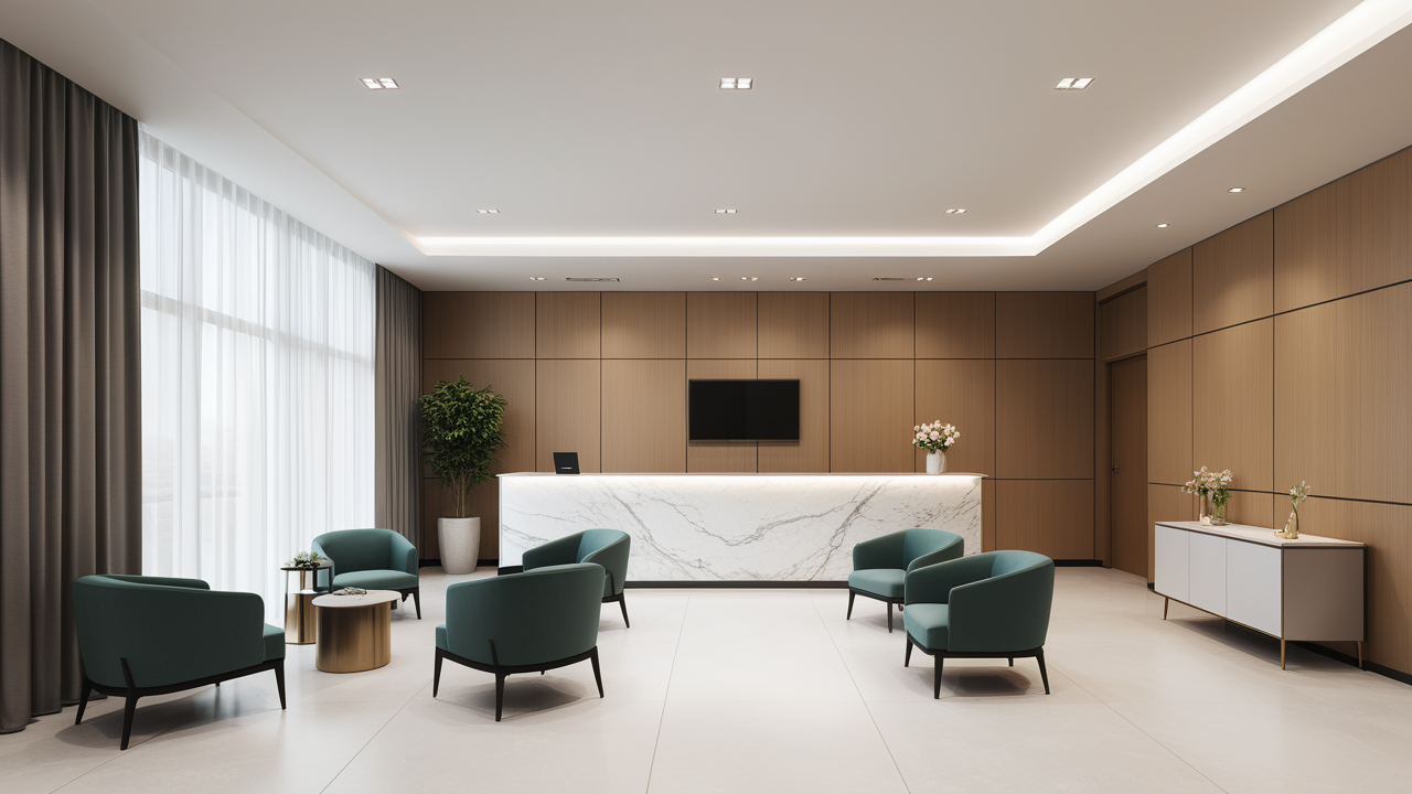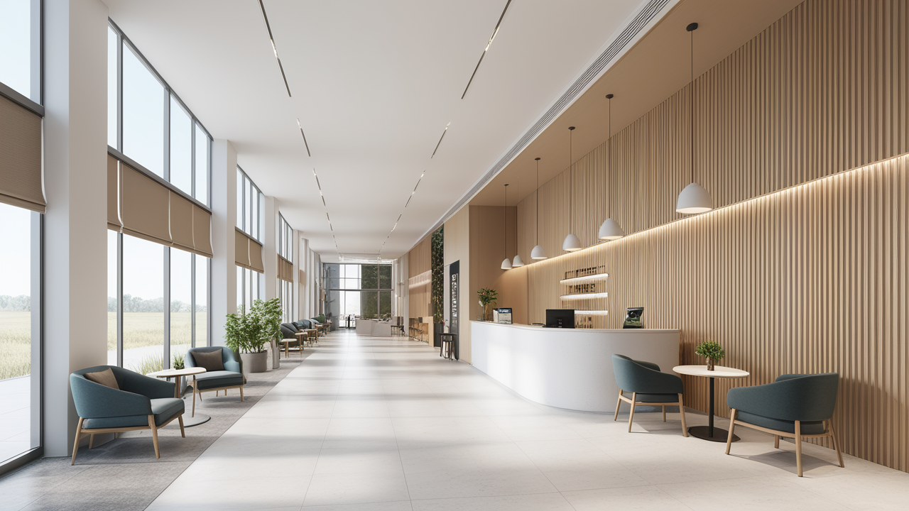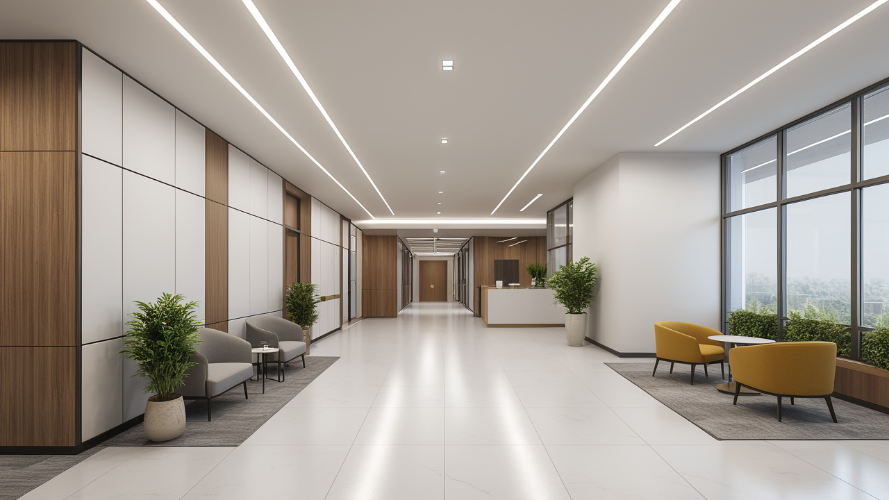 本案在這個辦公室設計中,甲方要求,有功能區設置,有總經理,總經理是本公司中最高的職務,所以在我的設計中給他選擇了一個比較好的朝向,采光比較好、地面采用仿古顯紋復合強化淺色木地板。防滑耐磨。幾何式的辦公桌莊嚴不失人性化。自然的美巧妙的運用到設計之中,突顯對美好生活的向往。放松工作時的狀態,副總經理兩間,裝修風格跟總經理相符,比較統一。會議室,在平面功能上。考慮了合理的行動路線,東面墻對應窗的位置設計了落地的玉砂玻璃隔墻,以滿足展示區的采光要求。