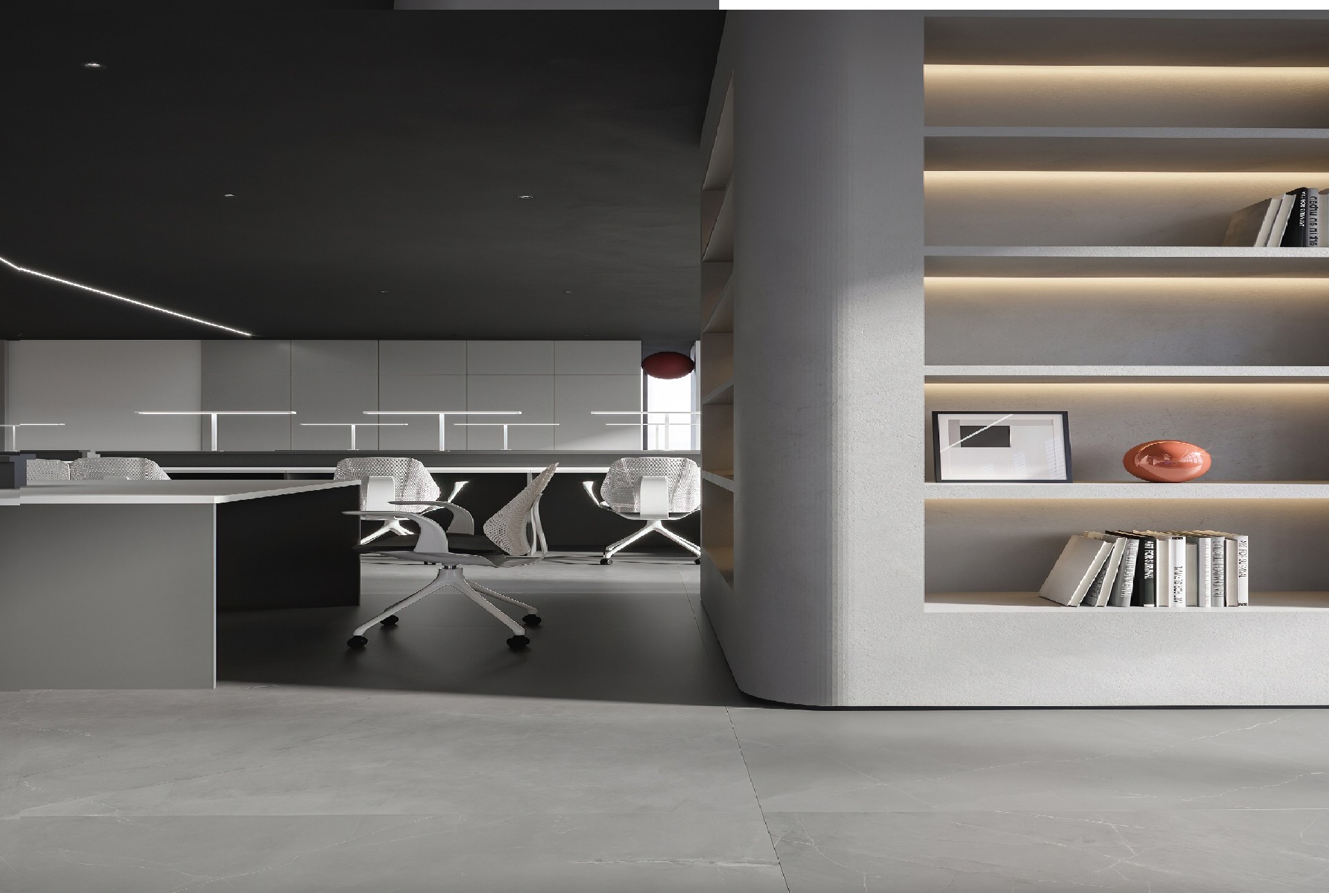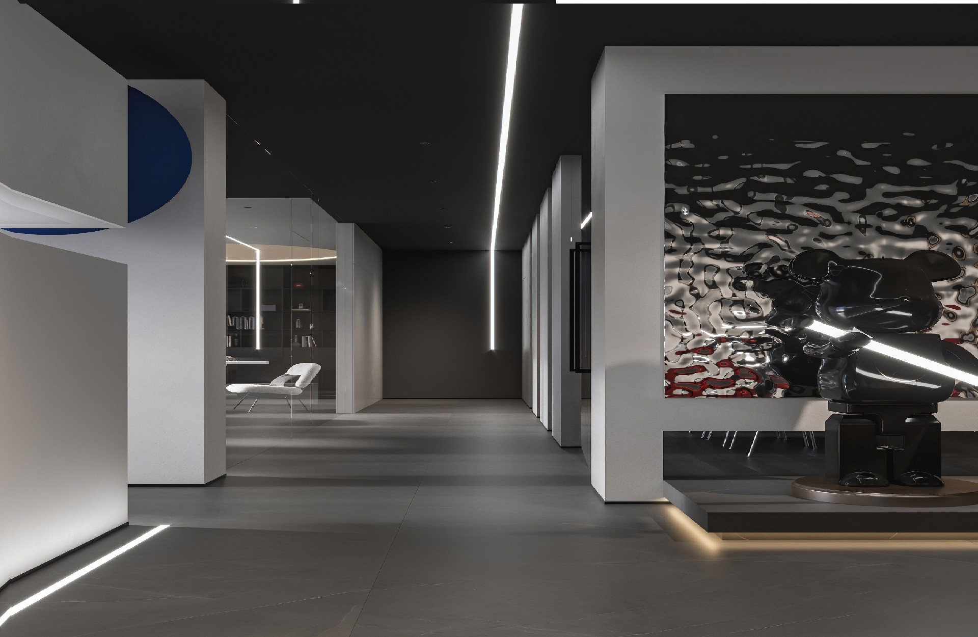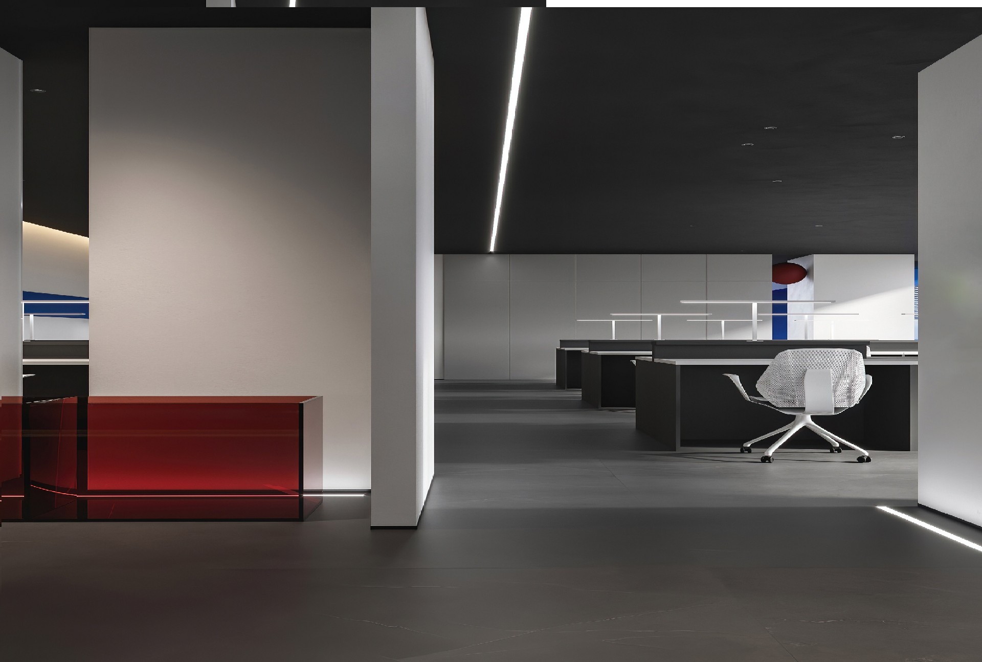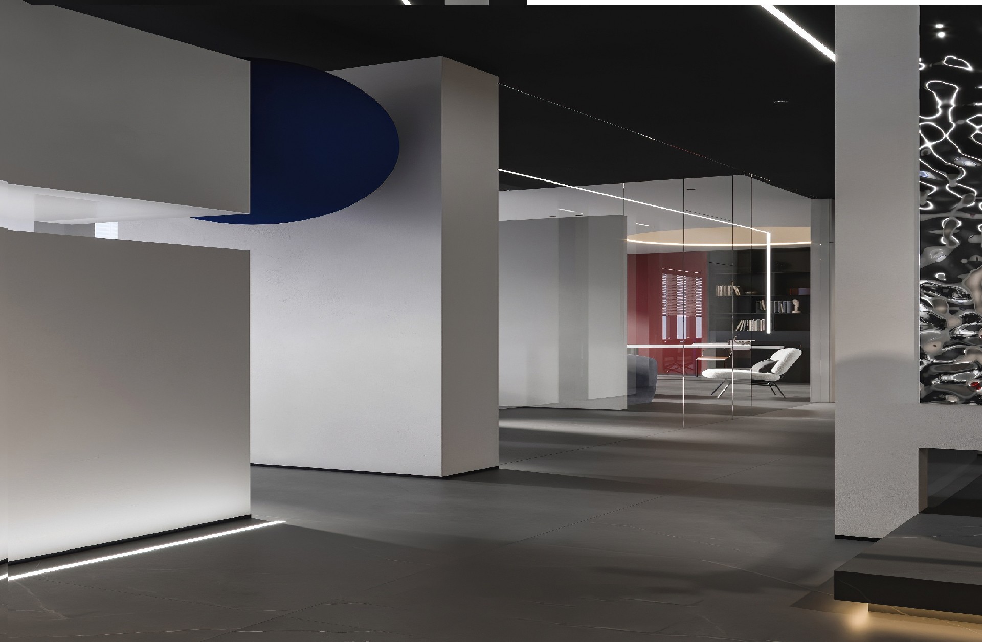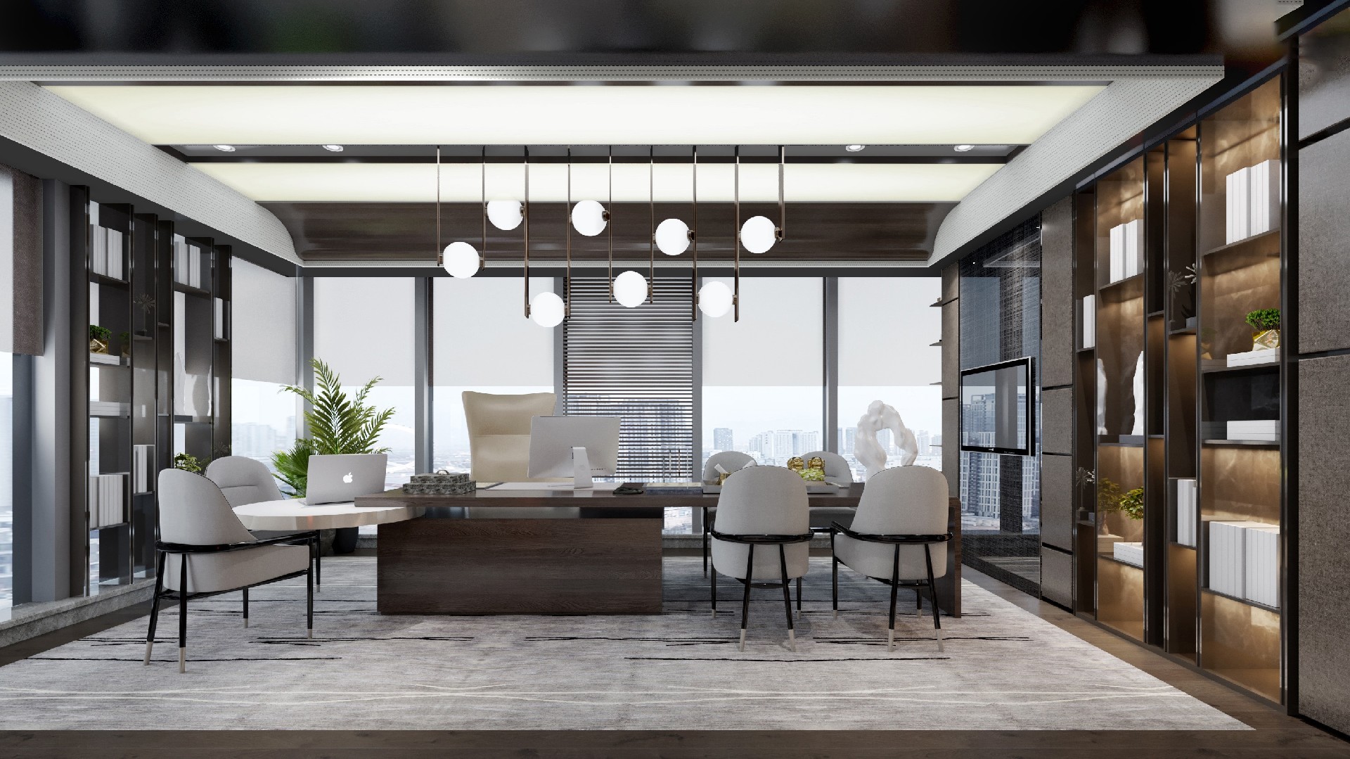 本案屬于簡約的風格,簡單而有品位,色調(diào)冷暖結(jié)合。辦公環(huán)境的風格取向、舒適與否對于提升員工的工作效率和體現(xiàn)企業(yè)文化起到至關(guān)重要的作用。辦公室整體色調(diào)采用藍灰調(diào),使員工辦公的心情能夠沉靜下來,工作效率自然可以得到提高。有一位建筑大師曾說過:“當綠化、光和風根據(jù)人的意念從原先自然中抽象出來,它們就趨向天堂”。我們在室內(nèi)引入天光設(shè)置了自然植物,將室外的感覺引入室內(nèi)空間,使辦公環(huán)境更具活力。